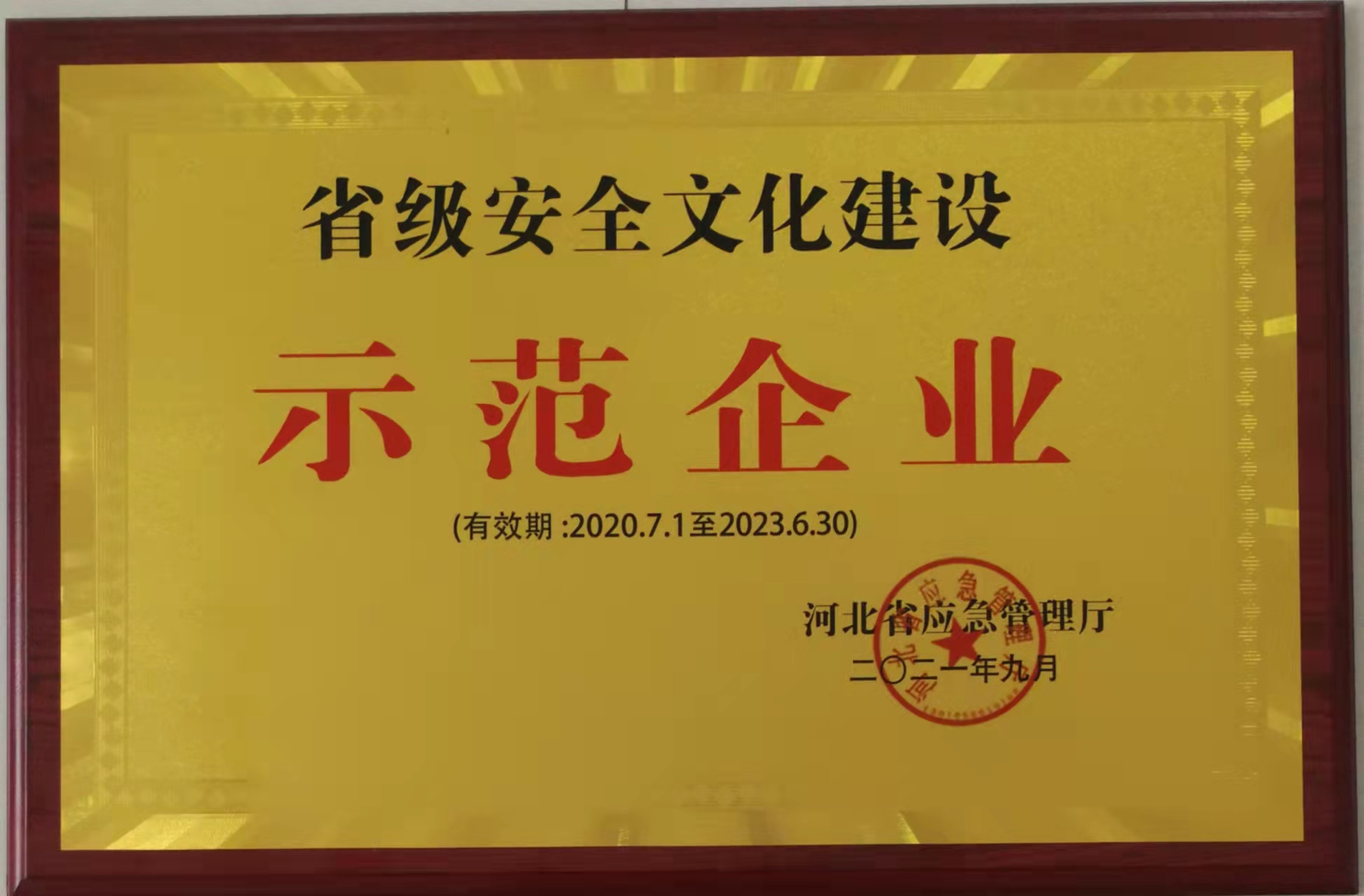省級(jí)安全文化建設(shè)示范企業(yè)(2021.7.1-2023.6.30)