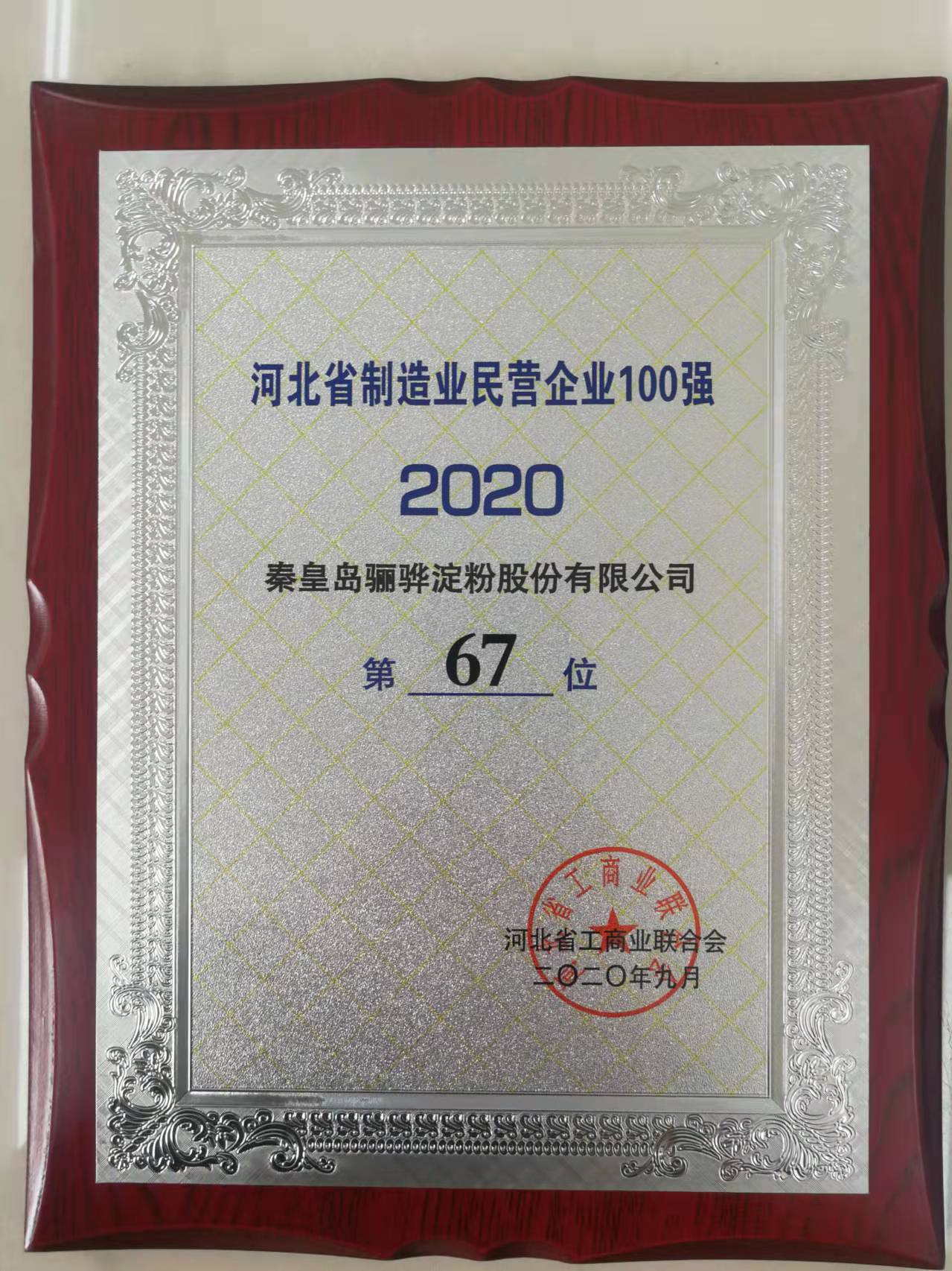 河北省制造業(yè)民營企業(yè)100強(qiáng)第67位